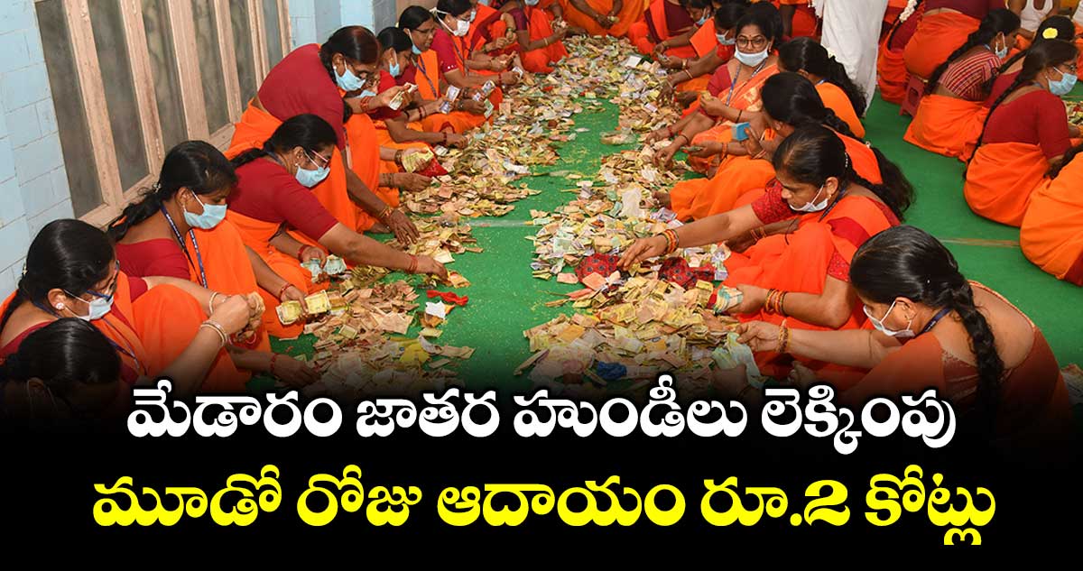 వరంగల్, వెలుగు: మేడారం జాతర హుండీలను హనుమకొండలోని టీటీడీ కల్యాణ మండపంలో మూడోరోజు లెక్కించారు. శనివారం 140 హుండీలు తెరవగా.. విదేశీ కరెన్సీకి సంబంధించి రూ.71,283 ఫారిన్ ఎక్స్చేంజి కానుకలు కలిపి రూ.2 కోట్ల 1 లక్ష 21 వేల 440 ఆదాయం లభించింది. మొత్తంగా గురు, శుక్ర, శనివారాల్లో 425 హుండీలను ఓపెన్ చేయగా.. రూ.8 కోట్ల 6 లక్షల 46 వేల 359 ఆదాయం సమకూరింది.