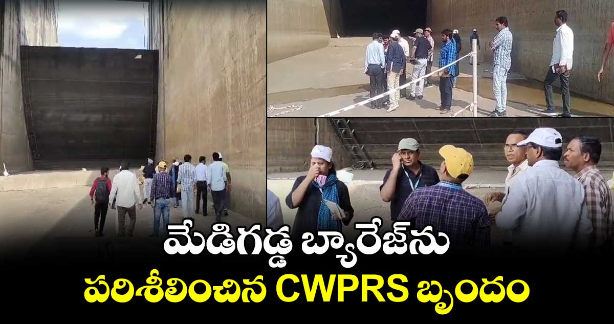 జయశంకర్ భూపాలపల్లి జిల్లా కాళేశ్వరం ప్రాజెక్ట్ లోని మేడిగడ్డ లక్ష్మీ బ్యారేజీని సెంట్రల్ వాటర్ పవర్ రీసెర్చ్ సెంటర్ నిపుణుల బృందం పరిశీలించింది. బ్యారేజ్ ఏడో బ్లాక్ లో దెబ్బతిని, కుంగిన పిల్లర్లను సిడబ్ల్యూపిఆర్ ఎస్ నిపుణులు క్షేత్రస్థాయిలో పరిశీలించారు. ఇంజనీరింగ్ అధికారులను వివరాలను అడిగి తెలుసుకున్నారు ముగ్గురు టెక్నికల్ నిపుణులు. బ్యారేజ్ ఏడో బ్లాక్ లోని కుంగిన 15 నుండి 21 వ పిల్లర్ గేట్ల వద్ద ఇసుక మేటలను పరిశీలించారు.