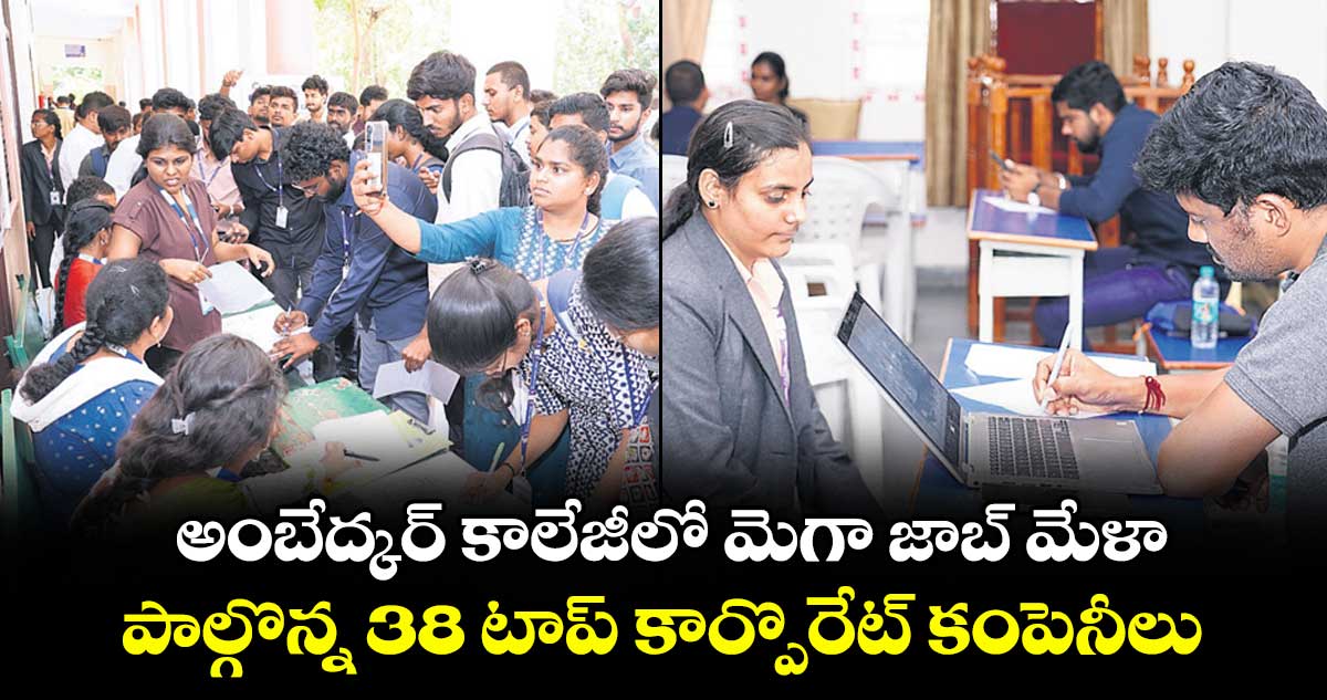 ముషీరాబాద్, వెలుగు: తమ విద్యార్థుల కోసం కాకా డాక్టర్ బి.ఆర్. అంబేద్కర్ కాలేజీ మేనేజ్మెంట్ గురువారం మెగా జాబ్ మేళాను నిర్వహించింది. బాగ్ లింగంపల్లిలోని కాలేజీ క్యాంపస్లో గురువారం జరిగిన ఈ ఈవెంట్లో టెక్ మహీంద్రా, కార్లోస్ డేటా సెంటర్, ఐఐసీ టెక్నాలజీస్, ఐఎంసీ డిజిట్, క్లౌడ్ బాక్స్ 99, ఏటీసీ, హెట్రో వంటి 38కి పైగా టాప్ కార్పొరేట్ కంపెనీలు పాల్గొన్నాయి.
