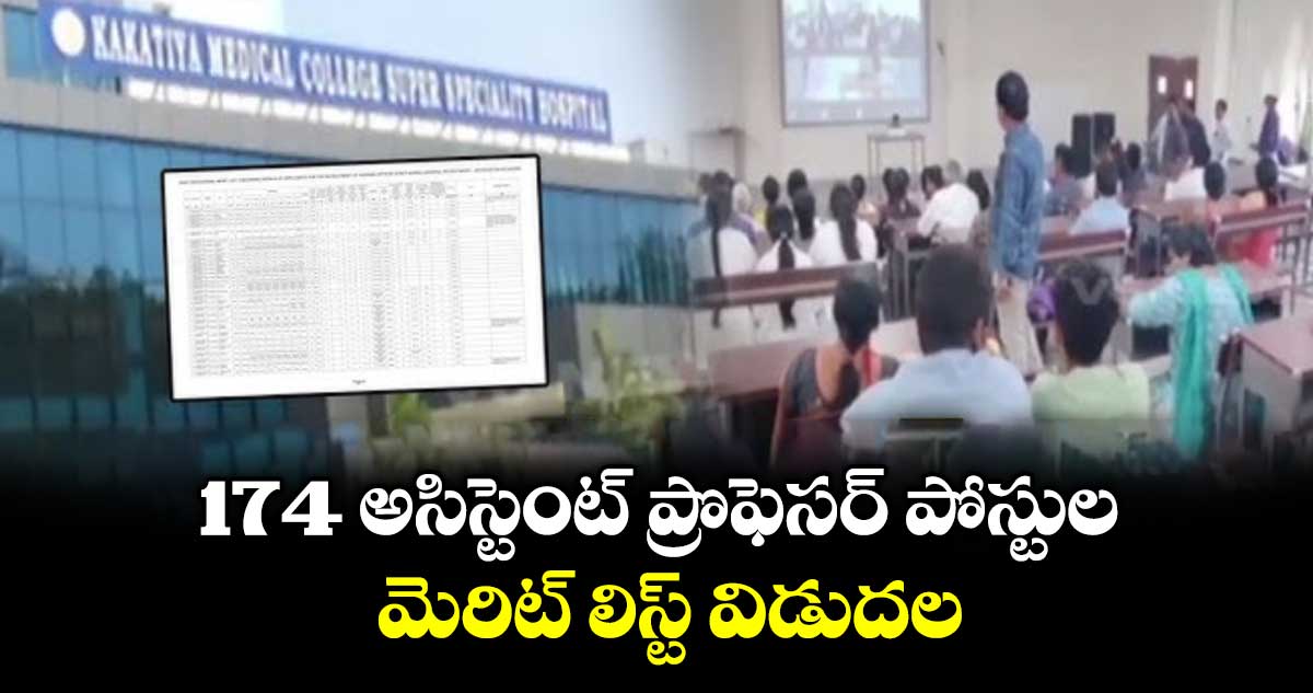 హైదరాబాద్, వెలుగు: రాష్ట్రంలోని ప్రభుత్వ మెడికల్ కాలేజీల్లో ఖాళీగా ఉన్న174 అసిస్టెంట్ ప్రొఫెసర్ పోస్టుల భర్తీకి సంబంధించి మెడికల్ అండ్ హెల్త్ సర్వీసెస్ రిక్రూట్మెంట్ బోర్డు ఆదివారం మెరిట్ లిస్టును విడుదల చేసింది. ప్రధానంగా నాలుగు విభాగాలకు చెందిన అభ్యర్థుల వివరాలను బోర్డు ప్రకటించింది. గైనకాలజీ (90), అనస్తీషియా (44), పీడియాట్రిక్స్ (28), ఆర్థోపెడిక్స్ (12) డిపార్ట్మెంట్లకు సంబంధించిన పోస్టులు ఉన్నాయి.