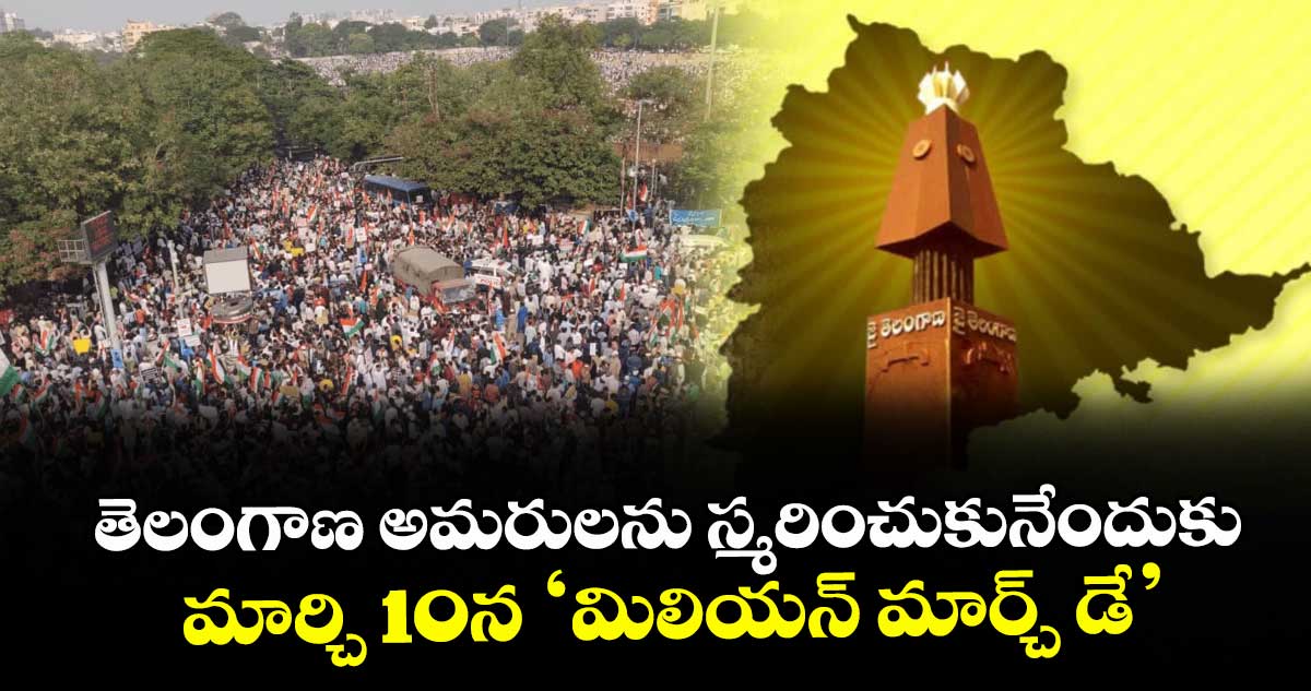 బషీర్బాగ్, వెలుగు: తెలంగాణ అమరులను స్మరించుకునేందుకు, తెలంగాణ హక్కుల దినంగా పాటించేందుకు ఈ నెల 10న ‘గ్రేట్ మిలియన్ మార్చ్ డే’ నిర్వహిస్తున్నట్లు తెలంగాణ ఉద్యమకారుల(టీయూ) జేఏసీ ప్రకటించింది. హైదరాబాద్ బషీర్బాగ్ ప్రెస్ క్లబ్లో టీయూజేఏసీ రాష్ట్ర అధ్యక్షుడు తుమ్మల ప్రఫుల్ రాంరెడ్డి వాల్ పోస్టర్ను ఆవిష్కరించారు.