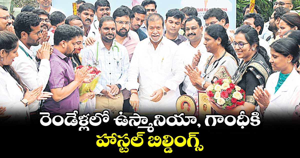 హైదరాబాద్, వెలుగు : ఉస్మానియా, గాంధీ మెడికల్ కాలేజీల్లో హాస్టల్ భవనాల నిర్మాణాలకు 10 రోజుల్లో శంకుస్థాపన చేస్తామని ఆరోగ్యశాఖ మంత్రి దామోదర రాజనర్సింహ తెలిపారు. కాకతీయ మెడికల్ కాలేజీకి ఇటీవల మంజూరు చేసిన రోడ్లు, ఇతర పనులను కూడా ప్రారంభిస్తామని ఆయన వెల్లడించారు. సోమవారం మినిస్టర్ క్వార్టర్స్లో మీడియాతో ఆయన మాట్లాడారు. 10 రోజుల్లో భవన నిర్మాణలకు శంకుస్థాపన చేసి, రెండేళ్లలో నిర్మాణ పనులను పూర్తి చేస్తామన్నారు. దవాఖాన్లు, కాలేజీల్లో మౌలిక సదుపాయాలతో పాటు..