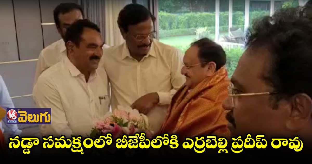 ఢిల్లీ : మంత్రి ఎర్రబెల్లి దయాకర్ రావు సోదరుడు ఎర్రబెల్లి ప్రదీప్ రావు బీజేపీలో చేరారు. ఢిల్లీలో బీజేపీ జాతీయ అధ్యక్షులు జేపీ నడ్డా సమక్షంలో ఎర్రబెల్లి ప్రదీప్ రావు కాషాయ కండువా కప్పుకున్నారు. ప్రదీప్ రావు వెంట తరుణ్ చుగ్, గరికపాటి మోహన్ రావు కూడా ఉన్నారు. ఎర్రబెల్లి ప్రదీప్ రావుతో పాటు బొమ్మ శ్రీరామ్ చక్రవర్తి, వీటి విజయ్ కుమార్, యోగనంద్ కొల్లూరు కూడా బీజేపీలో చేరారు.