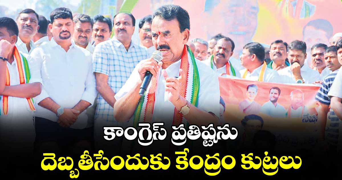 నాగర్కర్నూల్, వెలుగు: దేశం కోసం త్యాగాలకు పాల్పడిన గాంధీ కుటుంబంపై బీజేపీ కుట్రలు పన్నుతూ, కాంగ్రెస్ ప్రతిష్టను దెబ్బతీస్తోందని మంత్రి జూపల్లి కృష్ణారావు విమర్శించారు. దేశం కోసం త్యాగాలు చేసిన కుటుంబంపై తప్పుడు కేసులు పెడుతున్నారని పేర్కొన్నారు. నేషనల్ హెరాల్డ్ కేసులో కాంగ్రెస్ అగ్రనేతలు సోనియాగాంధీ, రాహుల్గాంధీపై కేంద్రం చేస్తున్న కుట్రలకు వ్యతిరేకంగా ఆదివారం నాగర్కర్నూల్లో ర్యాలీ నిర్వహించి అంబేద్కర్ చౌరస్తాలో నిరసన తెలిపారు.