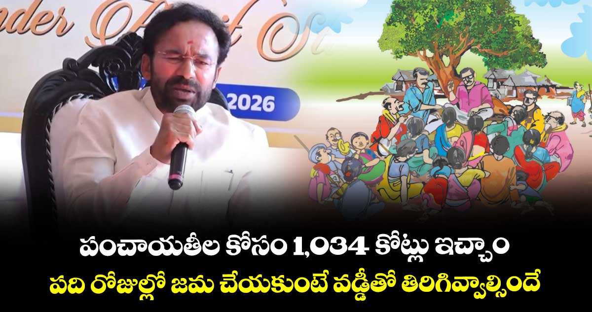 హైదరాబాద్, వెలుగు: గ్రామాల్లో రామరాజ్య స్థాపనే లక్ష్యంగా మోదీ ప్రభుత్వం పనిచేస్తోందని కేంద్ర బొగ్గు, గనుల శాఖ మంత్రి కిషన్ రెడ్డి అన్నారు. 15వ ఆర్థిక సంఘం సిఫార్సుల మేరకు.. 2026 ఏడాదికిగాను తెలంగాణలోని గ్రామాల బలోపేతానికి ఇప్పటివరకు కేంద్రం మొత్తం రూ. 1,034.42 కోట్లను విడుదల చేసినట్లు ఆయన ఓ ప్రకటనలో తెలిపారు.
