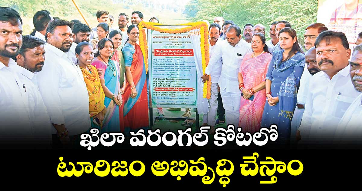ఖిలా వరంగల్ (మామునూరు), వెలుగు: ఖిలా వరంగల్ కోటను పర్యాటకులు ఆకర్శించేలా టూరిజం అభివృద్ధి చేస్తామని దేవాదాయ శాఖ మంత్రి కొండా సురేఖ అన్నారు. మంగళవారం కాకతీయ పట్టణాభివృద్ధి సంస్థ ఆధ్వర్యంలో మోటు పునరుజ్జీవనంలో భాగంగా పార్క్, రాతి కోట చుట్టూ రూ.2 కోట్ల అంచనాతో నిర్మించనున్న ప్రహరీ పనులకు శంకుస్థాపన చేశారు. ఈ సందర్భంగా మంత్రి మాట్లాడుతూ ఖిలా వరంగల్ చరిత్రను కాపాడుతూనే కోట విశిష్టను పెంపొదించేలా, టూరిజం అభివృద్ధి చేసి పర్యాటకులకు కనువిందు చేసేలా చేస్తామన్నారు.