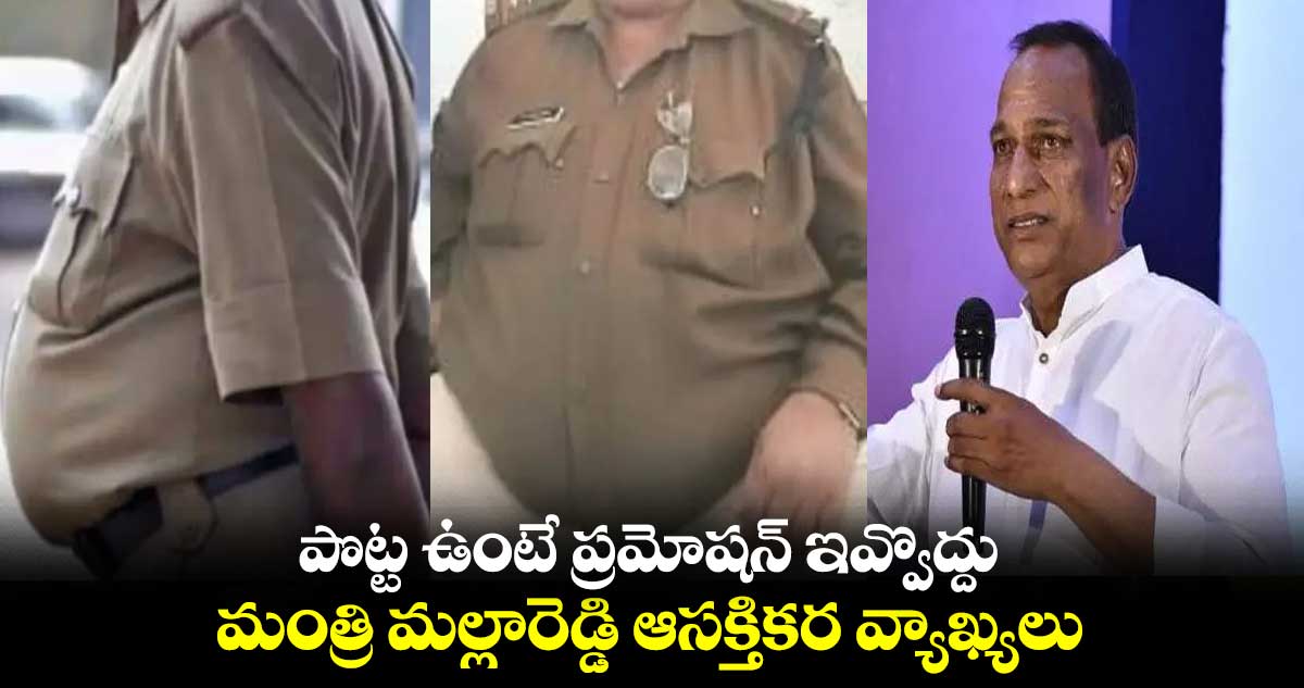 తెలంగాణ పోలీసులు దేశంలో నంబర్ వన్ స్థానంలో ఉన్నారని మంత్రి మల్లారెడ్డి గుర్తుచేశారు. మన పోలీసులు చక్కగా పనిచేస్తున్నారని పేర్కొన్నారు. కేసుల పరిష్కారం త్వరగా జరుగుతోందని తెలిపారు. సో.. పోలీసులు మంచి ఫిట్గా ఉండాలని కోరారు. అందుకే పొట్ట తగ్గించుకోవాలని.. తనలాగా ఫిట్ గా ఉంటేనే ప్రమోషన్లు ఇవ్వండంటూ కామెంట్స్ చేశారు. మంత్రి మల్లారెడ్డి ఈ వ్యాఖ్యలు సోషల్ మీడియాలో వైరల్ అవుతున్నాయి. అయితే మంత్రి మాటలకు హోం మంత్రి మహమూద్ అలీ, డీజీపీ అంజనీ కుమార్ నవ్వుకున్నారు.