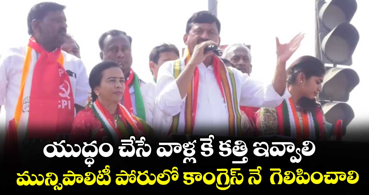 యుద్ధం చేసే వారికే కత్తి ఇవ్వాలన్నారు పొంగులేటి. రాష్ట్రంలో అధికారంలో ఉన్న కాంగ్రెస్ అభ్యర్థులనే మున్సిపాలిటీ పోరులో గెలిపించాలన్నారు . అర్హులైన పేదలకు ఇందిరమ్మ ఇళ్లు ఇచ్చి సొంతింటి కల నెరవేస్తున్నామని తెలిపారు. తొర్రూరులో ఇంటి స్థలాలను అర్హులైన పేదలకు పంపిణీ చేసే బాధ్యత రెవెన్యూ మంత్రిగా తాను తీసుకుంటున్నానని చెప్పారు.