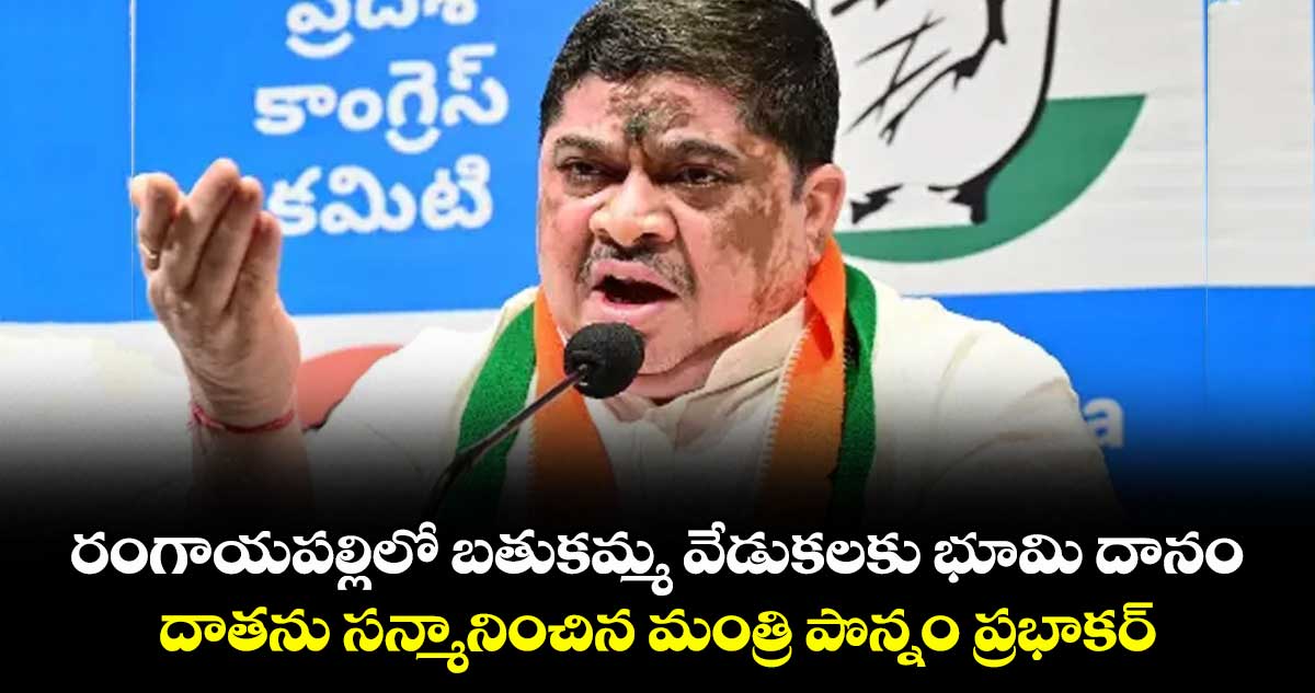 భీమదేవరపల్లి, వెలుగు: హనుమకొండ జిల్లా భీమదేవరపల్లి మండలం రంగాయపల్లి పంచాయతీ పరిధిలో మహిళలు బతుకమ్మ ఆడుకునేందుకు రూ.40 లక్షలు విలువైన 33 గుంటల భూమిని విరాళంగా అందించిన లక్కిరెడ్డి తిరుపతి రెడ్డిని మంత్రి పొన్నం ప్రభాకర్ సోమవారం ఘనంగా సన్మానించారు. అనంతరం మంత్రి మాట్లాడుతూ.. తిరుపతి రెడ్డి సొంత భూమిని గ్రామ ప్రయోజనాలకు దానంగా ఇవ్వడం అభినందనీయమన్నారు. బతుకమ్మ పండుగ నిర్వహణకు అనుకూలంగా ఉన్న స్థలాన్ని అభివృద్ధి చేసే పూర్తి బాధ్యత తనదేనని మంత్రి హామీ ఇచ్చారు.
