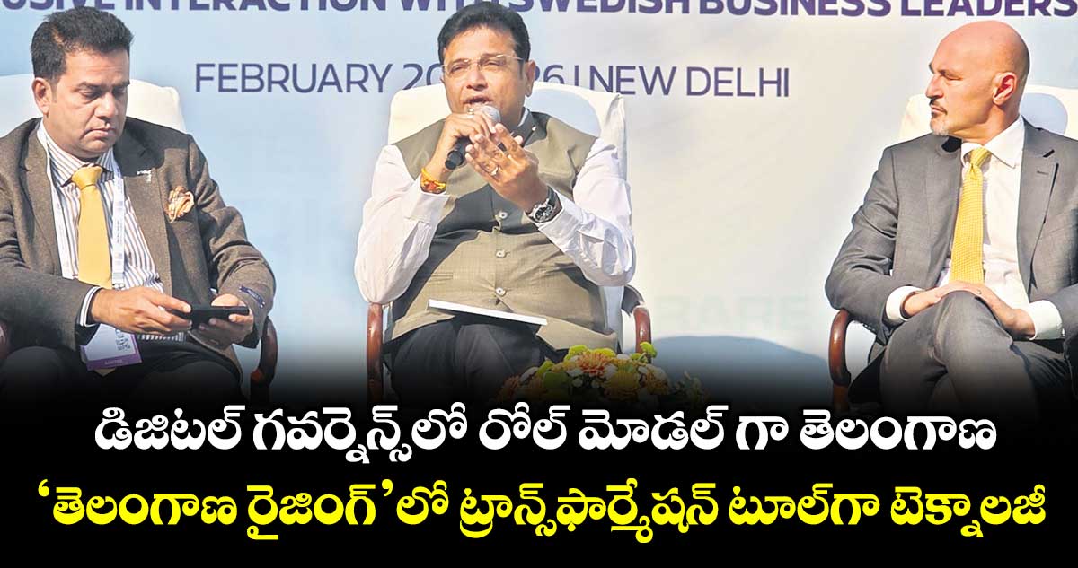 ‘తెలంగాణ రైజింగ్ 2047’లక్ష్య సాధనలో టెక్నాలజీని కేవలం ఓ సాఫ్ట్వేర్గా మాత్రమే కాకుండా.. ఓ ట్రాన్స్ఫార్మేషన్ టూల్గా మార్చుకుంటున్నామని, ఆ దిశగా రాష్ట్ర ప్రభుత్వం ప్రణాళికలను రూపొందిస్తున్నట్లు వెల్లడించారు. ఢిల్లీలోని భారత్ మండపంలో జరుగుతున్న ‘ఇండియా ఏఐ ఇంపాక్ట్ సమిట్–2026’లో శుక్రవారం ‘ఏజెంట్స్ ఆఫ్ ఛేంజ్: ఏఐ ఫర్ గవర్నమెంట్ సర్వీసెస్ అండ్ క్లైమేట్ రెసిలియెన్స్’అంశంపై నిర్వహించిన చర్చా కార్యక్రమంలో మంత్రి శ్రీధర్ బాబు పాల్గొని, మాట్లాడారు.
