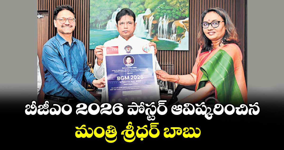 హైదరాబాద్, వెలుగు: బిట్స్ పిలానీ పూర్వ విద్యార్థుల అంతర్జాతీయ సమ్మేళనం ‘బిట్సా గ్లోబల్ మీట్ (బీజీఎం) 2026 పోస్టర్ను బంజారాహిల్స్ మినిస్టర్స్ క్వార్టర్స్లో తెలంగాణ ఐటీ మంత్రి శ్రీధర్ బాబు ఆవిష్కరించారు. ఈ కార్యక్రమంలో బీజీఎం 2026 చైర్పర్సన్ అనిత సాకురు, సీఈఓ మయూర్ పట్నాల పాల్గొన్నారు. వచ్చే నెల 9-–11లో హైదరాబాద్లో జరగనున్న ఈ సమ్మేళనంలో ప్రపంచవ్యాప్తంగా ఉన్న సాంకేతిక నిపుణులు, పారిశ్రామికవేత్తలు, పెట్టుబడిదారులు, పరిశోధకులు, విధాన నిర్ణేతలు సహా వెయ్యి మందికి పైగా గ్లోబల్ లీడర్లు పాల్గొననున్నారు.