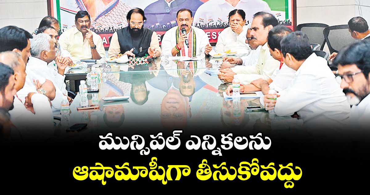 హైదరాబాద్, వెలుగు: రాబోయే మున్సిపల్ ఎన్నికలను కాంగ్రెస్ నాయకులు, కార్యకర్తలు ఆషామాషీగా తీసుకోవద్దని మంత్రి ఉత్తమ్ కుమార్ రెడ్డి సూచించారు. ఈ ఎన్నికలను ప్రతి ఒక్కరూ ప్రతిష్టాత్మకంగా తీసుకోవాలని, ప్రజాపాలనకు ప్రజలు ఇచ్చే తీర్పుగా భావించాలన్నారు. బుధవారం గాంధీ భవన్లో పీసీసీ చీఫ్ మహేశ్ గౌడ్ అధ్యక్షతన నిజామాబాద్ పార్లమెంట్ నియోజకవర్గ స్థాయి మున్సిపల్ ఎన్నికల సన్నాహక సమావేశం జరిగింది.