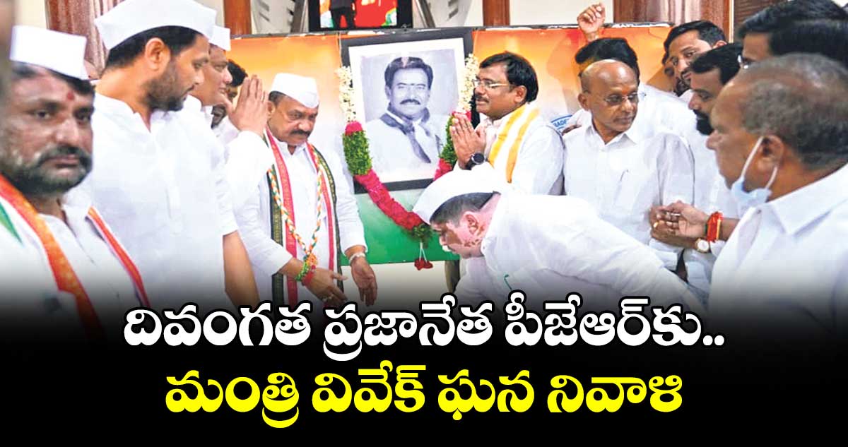 హైదరాబాద్: దివంగత ప్రజానేత, కాంగ్రెస్ పార్టీ సీనియర్ నాయకుడు పీజేఆర్ 18వ వర్ధంతి సందర్భంగా గాంధీ భవన్లో వారి చిత్రపటానికి టీపీసీసీ చీఫ్, ఎమ్మెల్సీ మహేశ్ కుమార్ గౌడ్, మంత్రులు పొన్నం ప్రభాకర్, వివేక్ వెం కటస్వామి, అజారుద్దీన్, ఇతర ముఖ్య నేతలు నివాళులు అర్పించారు.