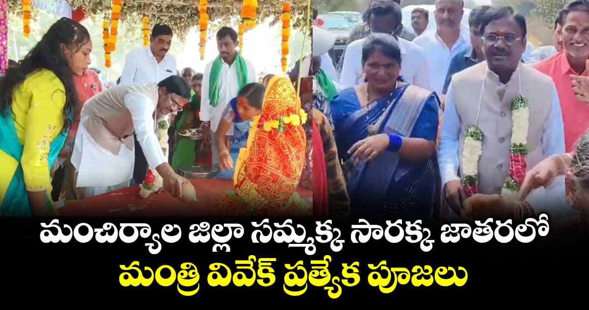 సమ్మక్క సారలమ్మ జాతర అంటే అందరికీ మేడారం జాతర గుర్తొస్తుంది. కానీ మంచిర్యాల జిల్లాలో కూడా సమ్మక్క సారక్క జాతర జరుగుతుంటుంది. చెన్నూరు మండలంలోని అక్కేపల్లి గ్రామ సమీపంలో ప్రతి ఏడాది జాతర నిర్వహిస్తుంటారు. గురువారం (జనవరి 29) అక్కేపల్లి సమ్మక్క సారక్క జాతరలో పాల్గొన్నారు కార్మిక, మైనింగ్ శాఖ మంత్రి వివేక్ వెంకటస్వామి.