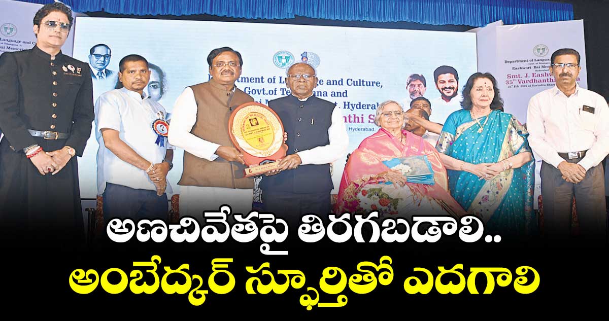 హైదరాబాద్, వెలుగు: ఎవరెన్ని అణిచివేతలు సృష్టించినా అంబేద్కర్ ఎలాగైతే నిలబడి కొట్లాడారో.. నేటి యువత కూడా అదే స్ఫూర్తితో ముందుకు సాగాలని రాష్ట్ర గనులు, కార్మిక శాఖ మంత్రి గడ్డం వివేక్ వెంకటస్వామి పిలుపునిచ్చారు. దివంగత నేత ఈశ్వరీబాయి 35వ వర్ధంతి సభ మంగళవారం రవీంద్రభారతిలో జరిగింది. రాష్ట్ర భాషా సాంస్కృతిక శాఖ, ఈశ్వరీబాయి మెమోరియల్ ట్రస్ట్ సంయుక్తంగా నిర్వహించిన ఈ కార్యక్రమానికి మంత్రి వివేక్ వెంకటస్వామి ముఖ్య అతిథిగా హాజరయ్యారు.