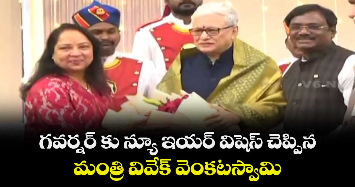 న్యూ ఇయర్ సందర్భంగా పలువురు మంత్రులు గవర్నర్ జిష్ణుదేవ్ వర్మను మర్యాదపూర్వకంగా కలిసి విషెస్ చెప్పారు. మంత్రులు వివేక్ వెంకటస్వామి, సీతక్క, పొన్నం ప్రభాకర్, అజారుద్దీన్ గవర్నర్ కు పుష్ప గుచ్చం ఇచ్చి నూతన సంవత్సర శుభాకాంక్షలు తెలిపారు. ఖైరతాబాద్ ఎమ్మెల్యే దానం నాగేందర్ సహా పలువురు కాంగ్రెస్, బీజేపీ నేతలు గవర్నర్ కు విషెస్ చెప్పారు.
