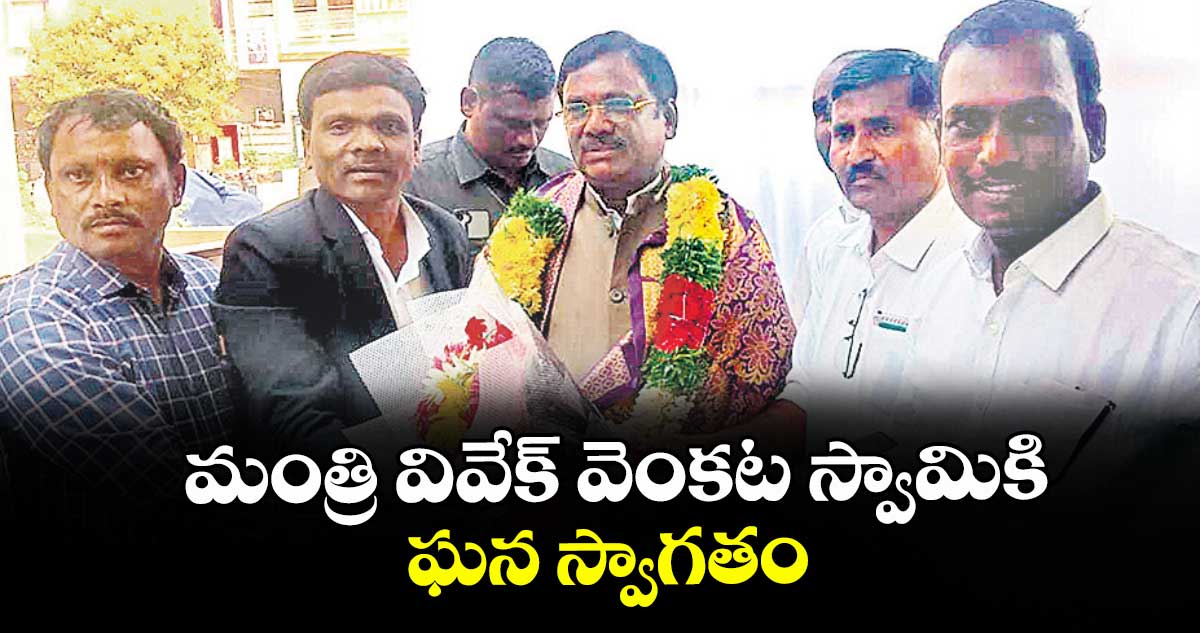 జహీరాబాద్, వెలుగు: రాష్ట్ర కార్మిక, భూగర్భ గనుల శాఖ మంత్రి వివేక్ వెంకటస్వామికి ఆదివారం జహీరాబాద్ లో దళిత సంఘాల నాయకులు, ఉద్యోగులు ఘన స్వాగతం పలికారు. మంత్రి వెంకటస్వామి గుల్బర్గా పర్యటనకు వెళ్తున్న క్రమంలో జహీరాబాద్ లోని ఆదర్శనగర్ లో నివాసం ఉంటున్న గవర్నమెంట్ టీచర్ రామతీర్థం నరసింహులు ఆహ్వానం మేరకు ఆయన ఇంటికి వచ్చి ఆయన కూతురు బర్త్ డే వేడుకల్లో పాల్గొన్నారు.