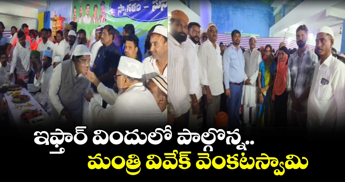 పవిత్ర రంజాన్మాసం ఇఫ్తార్విందులో పాల్గొన్నారు మంత్రి వివేక వెంకటస్వామి. మంచిర్యాల జిల్లా చెన్నూరు పట్టణంలో ఏర్పాటు చేసిన ఇఫ్తార్ విందులో కలెక్టర్ కుమార్దీపక్ తో కలిసి పాల్గొన్నారు. ఈ సందర్భంగా మాట్లాడుతూ హిందూ ముస్లింలందరూ గంగా జమునా తహజీబ్ లా కలిసిమెలిసి పండుగలు జరుపుకోవాలని పిలుపునిచ్చారు. ప్రజలందరూ సుఖ సంతోషాలతో ఉండాలని అల్లా ఆశీస్సులు అందరిపైనా ఉండాలని మంత్రి ప్రార్థనలు జరిపారు.