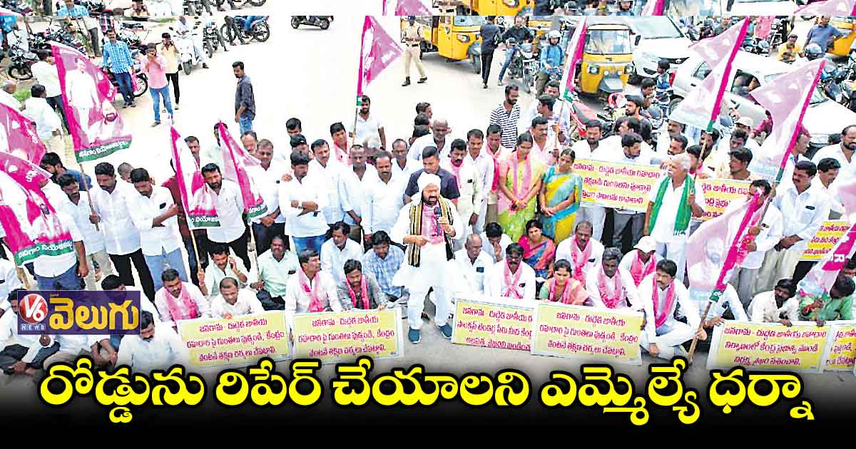 రోడ్డును రిపేర్ చేయాలని ఎమ్మెల్యే ధర్నా