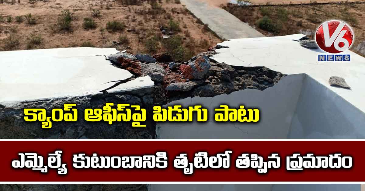 నల్లగొండ జిల్లా దేవరకొండ ఎమ్మెల్యే రవీంద్ర కుమార్ కు, అతని కుటుంబానికి తృటిలో పెను ప్రమాదం తప్పింది. గురువారం సాయంత్రం ఎమ్మెల్యే క్యాంప్ కార్యాలయంపై పిడుగు పడింది. నియోజకవర్గంలోని పలు చోట్ల ఉరుములు, మెరుపులతో కూడిన వర్షం పడింది. ఈ కారణంగా బంగ్లా పైనున్న పెంట్ హౌస్ పై పిడుగు పడింది. ఆ సమయంలో ఎమ్మెల్యే రవీంద్రకుమార్, అతని కుటుంబసభ్యులు ఇంట్లోనే ఉన్నారు. పెంట్ హౌస్ పై ఉన్న పిట్టగోడ అంచున పిడుగు పడడంతో ప్రమాదం తప్పింది.