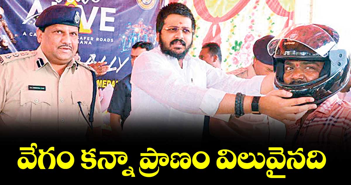రామాయంపేట, వెలుగు: వేగం కన్నా ప్రాణం విలువైనదని, ప్రతి ఒక్కరూ ట్రాఫిక్ రూల్స్ పాటిస్తూ క్షేమంగా ఇళ్లకు చేరాలని ఎమ్మెల్యే రోహిత్ రావు సూచించారు. రోడ్డు భద్రతా వారోత్సవాల్లో భాగంగా గురువారం రామాయంపేటలో అరైవ్ అలైవ్ ప్రోగ్రాం నిర్వహించారు. ముఖ్య అతిథులుగా ఎమ్మెల్యే, ఎస్పీ శ్రీనివాసరావు హాజరయ్యారు. కార్యక్రమంలో భాగంగా పట్టణంలోని కాలేజ్ గ్రౌండ్ లో వాహనదారులకు హెల్మెట్లు అందజేశారు. అనంతరం ఎమ్మెల్యే యువకులతో కలిసి బైక్ నడిపారు.