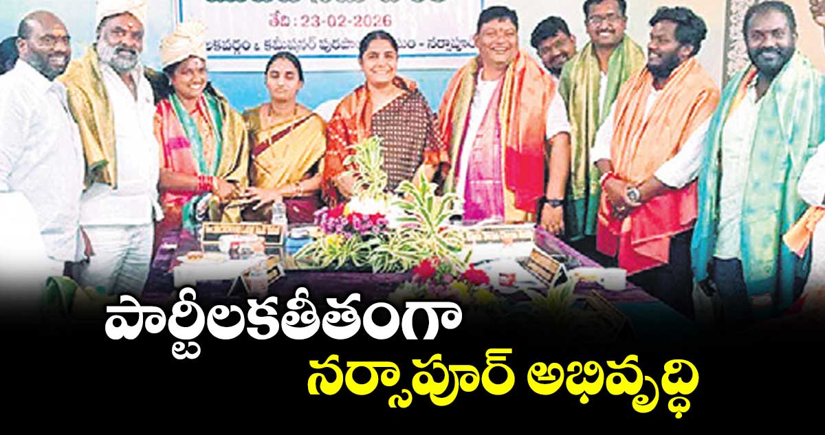 నర్సాపూర్, వెలుగు: పార్టీలకతీతంగా నర్సాపూర్ మున్సిపాలిటీ అభివృద్ధికి కృషి చేయాలని ఎమ్మెల్యే సునీతా రెడ్డి కోరారు. సోమవారం నర్సాపూర్ మున్సిపల్ పాలకవర్గ సమావేశం ఏర్పాటు చేయగా నూతనంగా ఎన్నికైన మున్సిపల్ చైర్మన్ లక్ష్మీ రాజు యాదవ్, వైస్ చైర్మన్ బుచ్చేశ్ యాదవ్, కౌన్సిలర్లను ఎమ్మెల్యే పూలమాల శాలువాలతో సన్మానించారు. అనంతరం మాట్లాడుతూ పార్టీలను పక్కనపెట్టి మున్సిపాలిటీ అభివృద్ధికి సహకరించుకోవాలన్నారు. తన వంతు సహాయ సహకారాలు ఎల్లప్పుడూ ఉంటాయని తెలిపారు. కార్యక్రమంలో మున్సిపల్ కమిషనర్ రామ్ చరణ్ రెడ్డి, మేనేజర్ మధుసూదన్, కౌన్సిలర్లు శ్రీకాంత్, రాజు, లలిత, సరళ, సునీత, మోయిజ్, ఆఫ్రిన్ పాల్గొన్నారు.