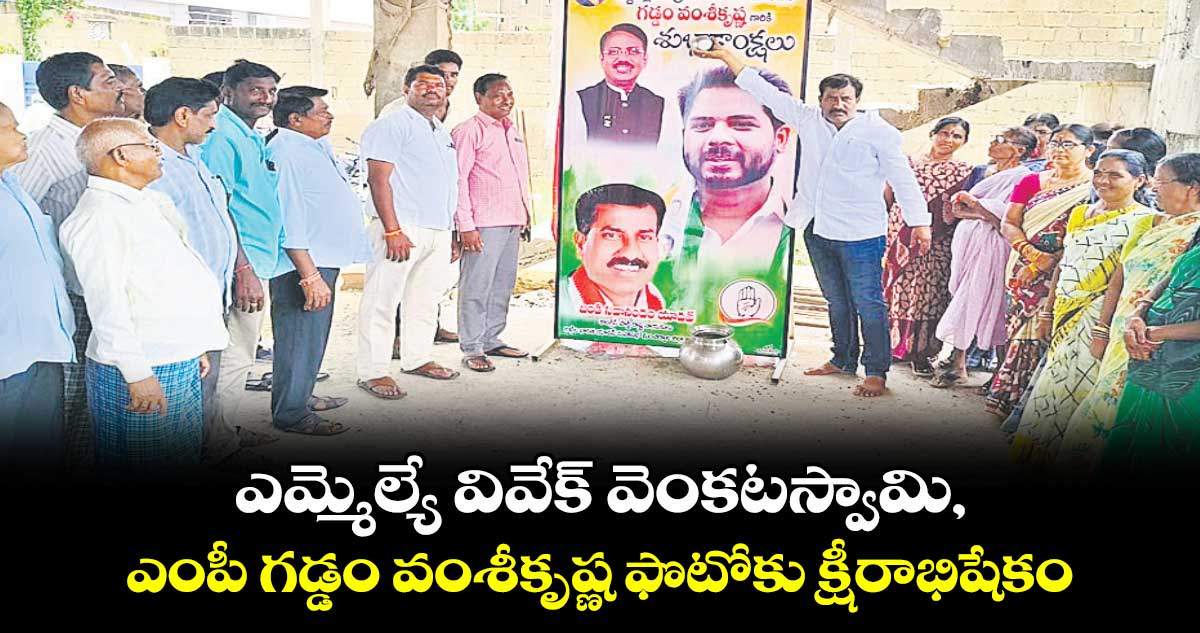 కోల్బెల్ట్, వెలుగు : మందమర్రి మున్సిపాలిటీ పరిధిలోని 23 వార్డు మారుతీనగర్లో తాగునీరు, కరెంట్ సౌలత్లు కల్పించేందుకు ఎమ్మెల్యే వివేక్ వెంకటస్వామి, ఎంపీ గడ్డం వంశీకృష్ణ చొరవచూపారని వారి ఫొటోలకు కాలనీవాసులు క్షీరాభిషేకం చేశారు. సోమవారం కాంగ్రెస్ సీనియర్ లీడర్, అఖిలభారత యాదవ సంఘం జిల్లా ప్రెసిడెంట్ బండి సదానందం యాదవ్ ఆధ్వర్యంలో కాలనీ వాసులు ఈ కార్యక్రమం చేపట్టారు. ఈ సందర్భంగా వారు మాట్లాడుతూ..