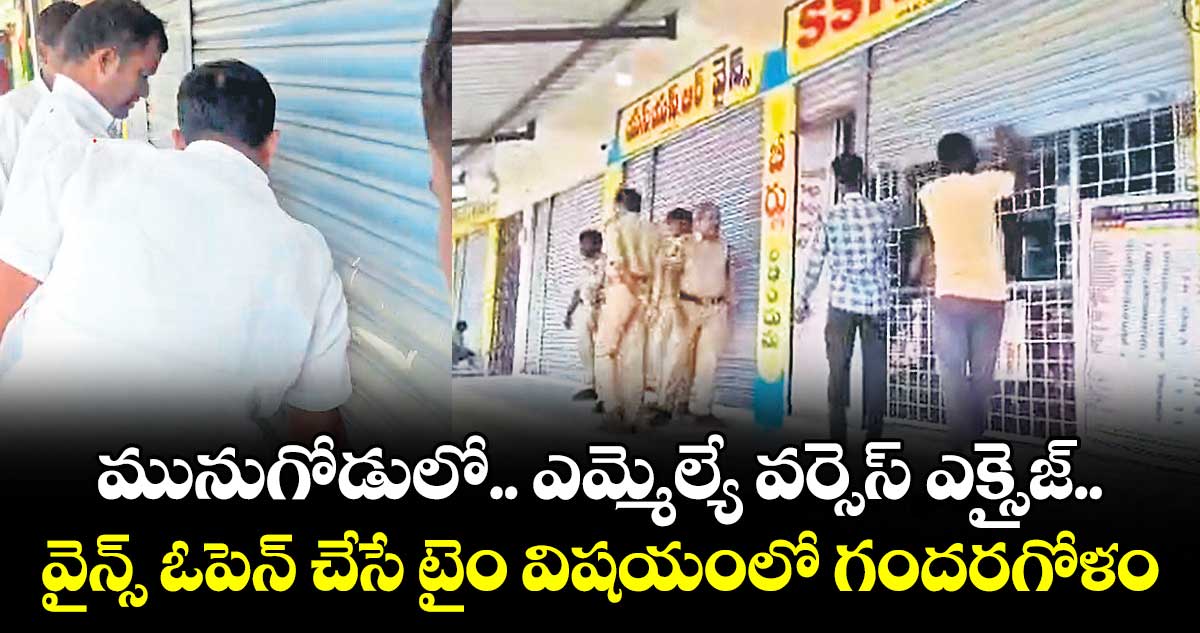 యాదాద్రి/సంస్థాన్నారాయణపురం, వెలుగు : మునుగోడు నియోజకవర్గంలో వైన్స్ ఓపెన్ చేసే టైం విషయంలో ఎమ్మెల్యే, ఎక్సైజ్ శాఖ మధ్య గొడవ మొదలైంది. వైన్స్ను మధ్యాహ్నం ఒంటి గంట తర్వాతే తెరవాలని ఎమ్మెల్యే కోమటిరెడ్డి రాజగోపాల్రెడ్డి ఓనర్లను ఆదేశించగా.. అదేం కుదరదంటూ ఎక్సైజ్ ఆఫీసర్లు దగ్గరుండి మరీ వైన్స్ను ఓపెన్ చేయించడం వివాదంగా మారింది.