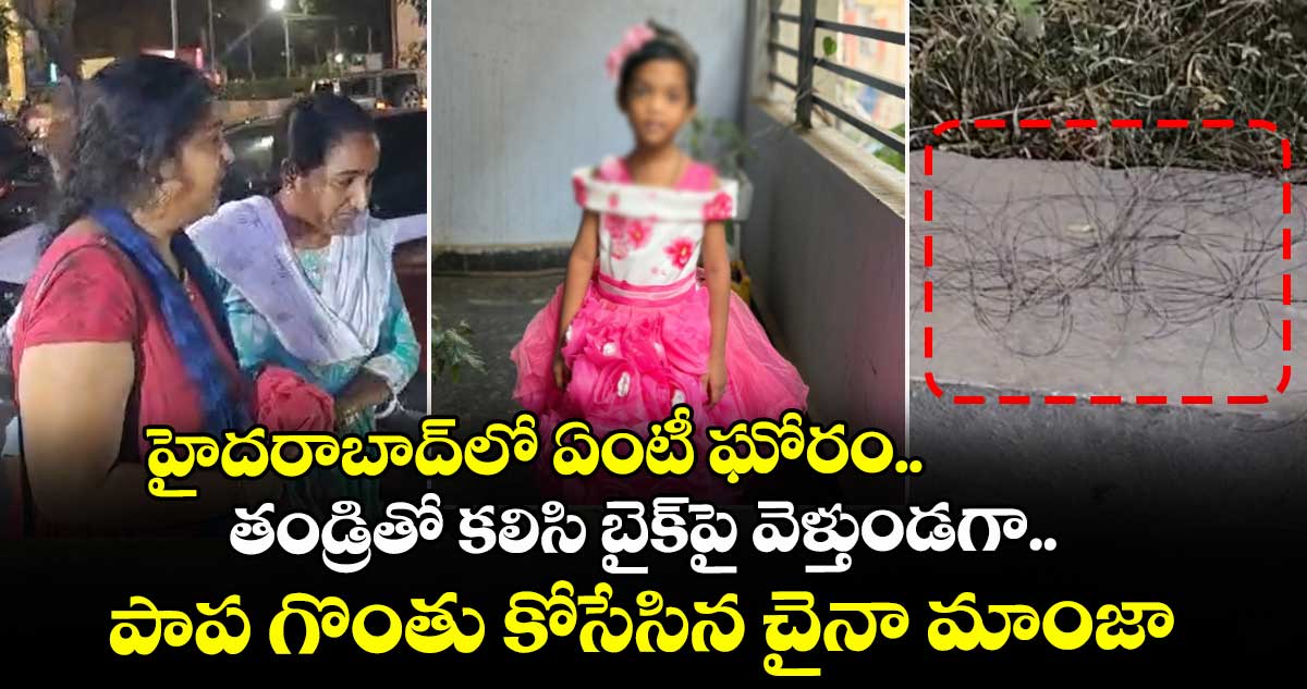 హైదరాబాద్: కూకట్ పల్లి పోలీస్ స్టేషన్ పరిధిలోని వివేకానంద నగర్ దగ్గర విషాదం చోటు చేసుకుంది. తండ్రితో కలిసి బైక్పై వెళుతున్న చిన్నారి నిష్విక దరియా(5) గొంతుకు చైనా మాంజా కోసుకొని అక్కడికక్కడే మృతి చెందింది. KPHB గోకుల్ ఫ్లాట్స్లో నివాసముండే రామసాగర్ దంపతులు పఠాన్ చెరువు సమీపంలోని ఖాజీపల్లి గ్రామంలో వారు ఇటీవల తీసుకున్న ఇంటి దగ్గర జరుగుతున్న ఇంటీరియర్ పనులు చూసుకొని తిరిగి వస్తుండగా ఈ ఘటన జరిగింది.