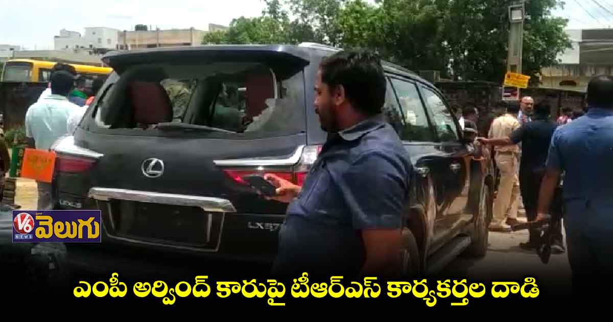 జగిత్యాల జిల్లా వరద బాధితులను పరామర్శించడానికి వెళ్లిన నిజామాబాద్ ఎంపీ అర్వింద్ ను స్థానికులు అడ్డుకున్నారు. ఇబ్రహీంపట్నం మండలం ఎర్దండిలో TRS కార్యకర్తలు MP కారును ధ్వంసం చేశారు. ఈ దాడిలో కారు అద్దాలు ధ్వంసమయ్యాయి. ఆందోళనకారులను పోలీసులు చెదరగొట్టే ప్రయత్నం చేశారు. టీఆర్ఎస్ కార్యకర్తలు కావాలని దాడిచేశారని బీజేపీ ఆరోపిస్తోంది.