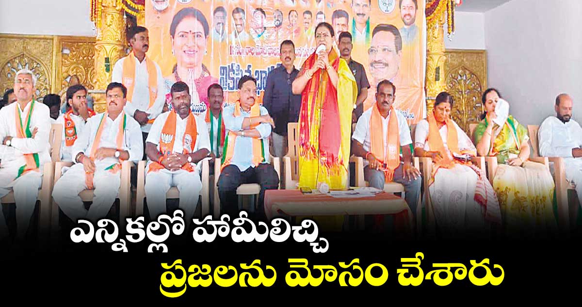 మహబూబ్ నగర్ రూరల్, వెలుగు: ఎన్నికల్లో అమలు కాని హామీలు ఇచ్చి కాంగ్రెస్ ప్రభుత్వం ప్రజలను మోసం చేసిందని పాలమూరు ఎంపీ డీకే అరుణ పేర్కొన్నారు. సోమవారం రూరల్ మండలం మాచన్ పల్లి గ్రామంలో ప్రధానిగా మోదీ 11 ఏండ్లు పూర్తి చేసుకున్న సందర్భంగా నిర్వహించిన ‘విక సిత్ భారత్’ సంకల్ప సభకు రాష్ట్ర నాయకుడు జితేందర్ కుమార్ తో కలిసి పాల్గొన్నారు. ఈ సందర్భంగా ఎంపీ మాట్లాడుతూ వృద్ధులకు రూ.4 వేల ఫించన్ ఇస్తామని, ఇల్లు లేని ప్రతి ఒక్కరికీ ఇందిరమ్మ ఇండ్లు కట్టిస్తామని చెప్పి అధికారంలోకి వచ్చారన్నారు. ఇప్పుడేమో ఎక్కడికి పోయినా అప్పు పుట్టే పరిస్థితి లేదని, రాష్ట్ర ఆర్థిక పరిస్థితి బాగాలేదని చెబుతున్నారని విమర్శించారు.
