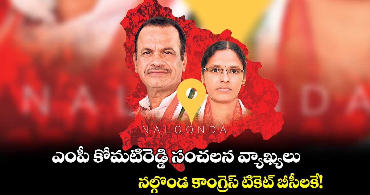 నల్గొండ కాంగ్రెస్ టికెట్బీసీలకే ఇవ్వాలని ఎంపీ కోమటిరెడ్డి వెంకట్రెడ్డి కొత్త ప్రతిపాదనను తెరపైకి తెచ్చారు. తాను పోటీ చేయాలనుకున్న నల్గొండ సీటును బీసీలకు ఇస్తానని మంగళవారం గాంధీ భవన్లో సంచలన వ్యాఖ్యలు చేశారు. దీంతో వెంకట్రెడ్డి కామెంట్ల వెనక అసలు కారణం ఏమై ఉండొచ్చని పార్టీలో చర్చ జరుగుతోంది. నల్గొండ ఎమ్మెల్యే టికెట్ కోసం మొత్తం ఏడుగురు దరఖాస్తు చేసుకున్నారు. వారిలో బీసీ లీడర్లు నల్గొండ మున్సిపల్ మాజీ చైర్ పర్సన్ బొడ్డుపల్లి లక్ష్మి, తిప్పర్తి జెడ్పీటీసీ తండు సైదులు గౌడ్ ఉన్నారు.