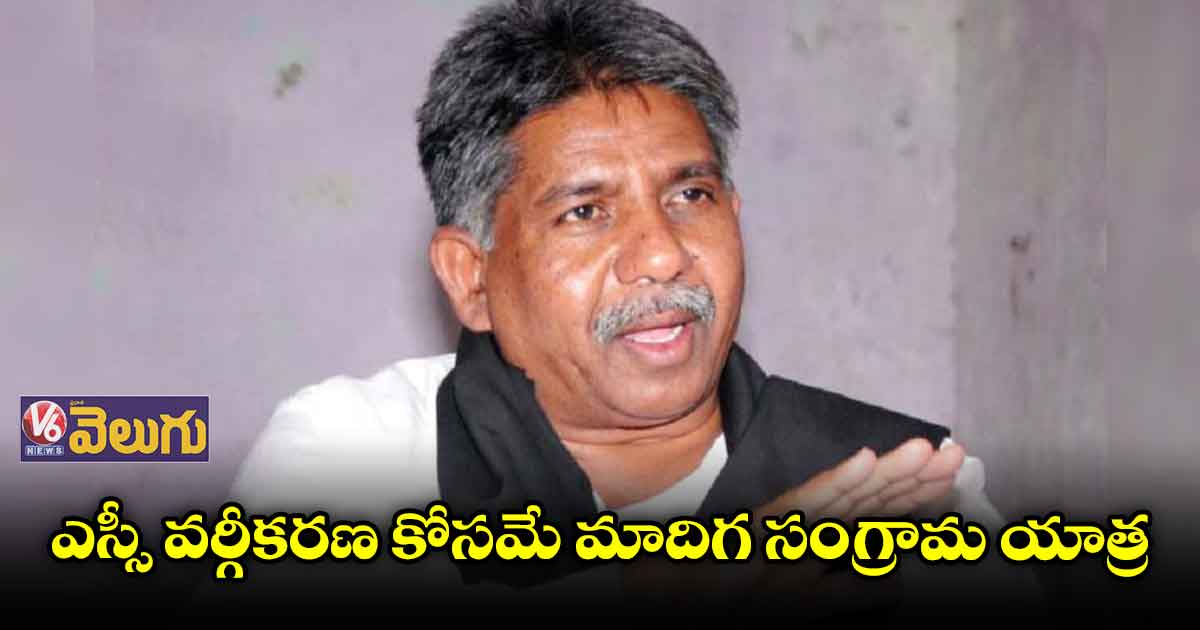 ఎస్సీ వర్గీకరణ కోసం రేపటి నుంచి మాదిగ సంగ్రామ యాత్ర చేస్తామని ఎంఆర్పీఎస్ అధ్యక్షుడు మందకృష్ణ మాదిగ అన్నారు. ఎస్సీ వర్గీకరణకు చట్టబద్దత కల్పించటంలో కేంద్రం విఫలమైందన్నారు. దీనికి నిరసనగా మాదిగ సంగ్రామ యాత్ర చేస్తున్నామన్నారు. 119 నియోజకవర్గాల్లో యాత్ర చేస్తామన్నారు. కేంద్రంతో తాడో పేడో తేల్చుకోవడానికి యాత్ర నిర్వహిస్తున్నామని చెప్పారు. తెలంగాణలో బీజేపీ అధికారంలోకి రావటం పగటి కలే అన్నారు.