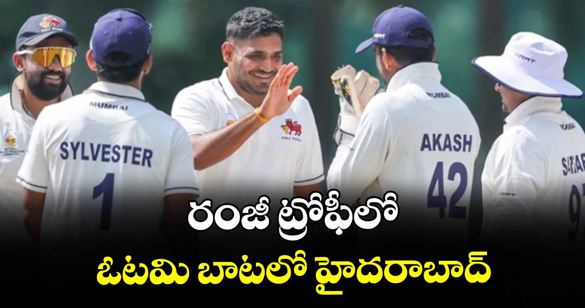 హైదరాబాద్, వెలుగు: రంజీ ట్రోఫీలో భాగంగా సొంతగడ్డపై ముంబైతో జరుగుతున్న గ్రూప్–డి మ్యాచ్లో హైదరాబాద్ ఇన్నింగ్స్ ఓటమి ముంగిట నిలిచింది. ఉప్పల్ స్టేడియంలో ఓవర్నైట్ స్కోరు 138/2 తో మూడో రోజు, శనివారం ఆట కొనసాగించిన ఆతిథ్య జట్టు తొలి ఇన్నింగ్స్లో 267 రన్స్కే ఆలౌటై ఫాలోఆన్లో పడింది.