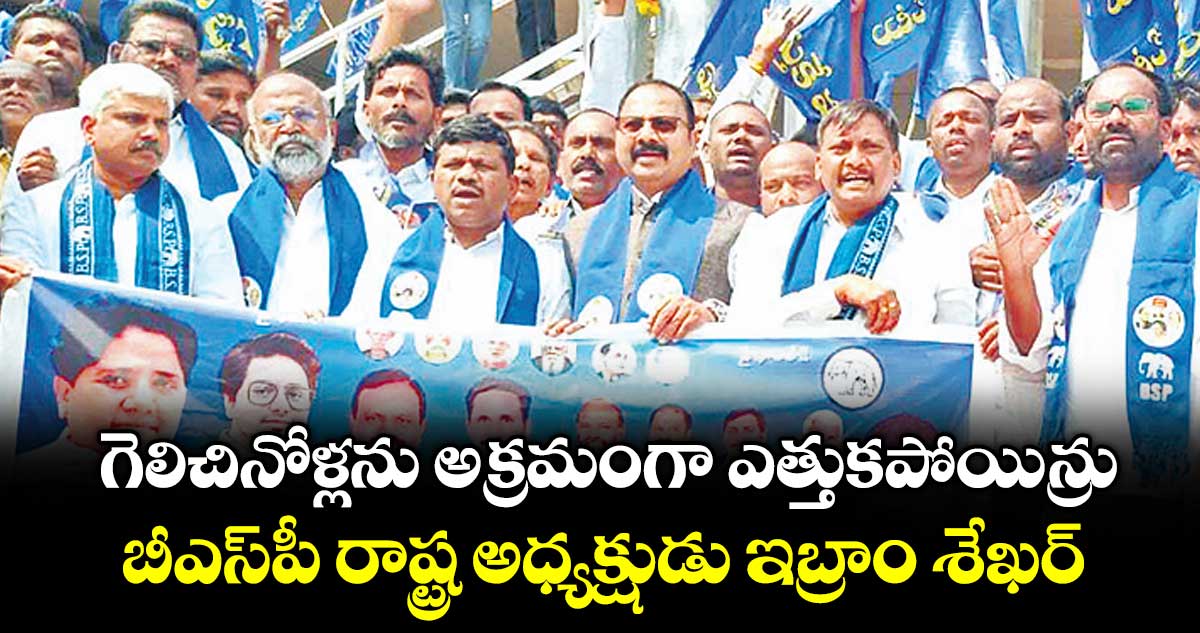 ట్యాంక్ బండ్, వెలుగు: మున్సిపల్ ఎన్నికల్లో గెలిచిన బహుజన సమాజ్ పార్టీ అభ్యర్థులను అధికార పార్టీ అక్రమంగా ఎత్తుకెళ్లిందని ఆ పార్టీ రాష్ట్ర అధ్యక్షుడు ఇబ్రాం శేఖర్ ఆరోపించారు. సోమవారం ట్యాంక్ బండ్లోని అంబేద్కర్ విగ్రహం వద్ద బీఎస్పీ నాయకులు ఆందోళన చేశారు. ఈ సందర్భంగా ఆయన మాట్లాడుతూ, కౌంటింగ్ సెంటర్ నుంచి తమ అభ్యర్థులను బలవంతంగా తీసుకెళ్లి బెదిరింపులకు పాల్పడటం రాజ్యాంగ విరుద్ధమని మండిపడ్డారు.