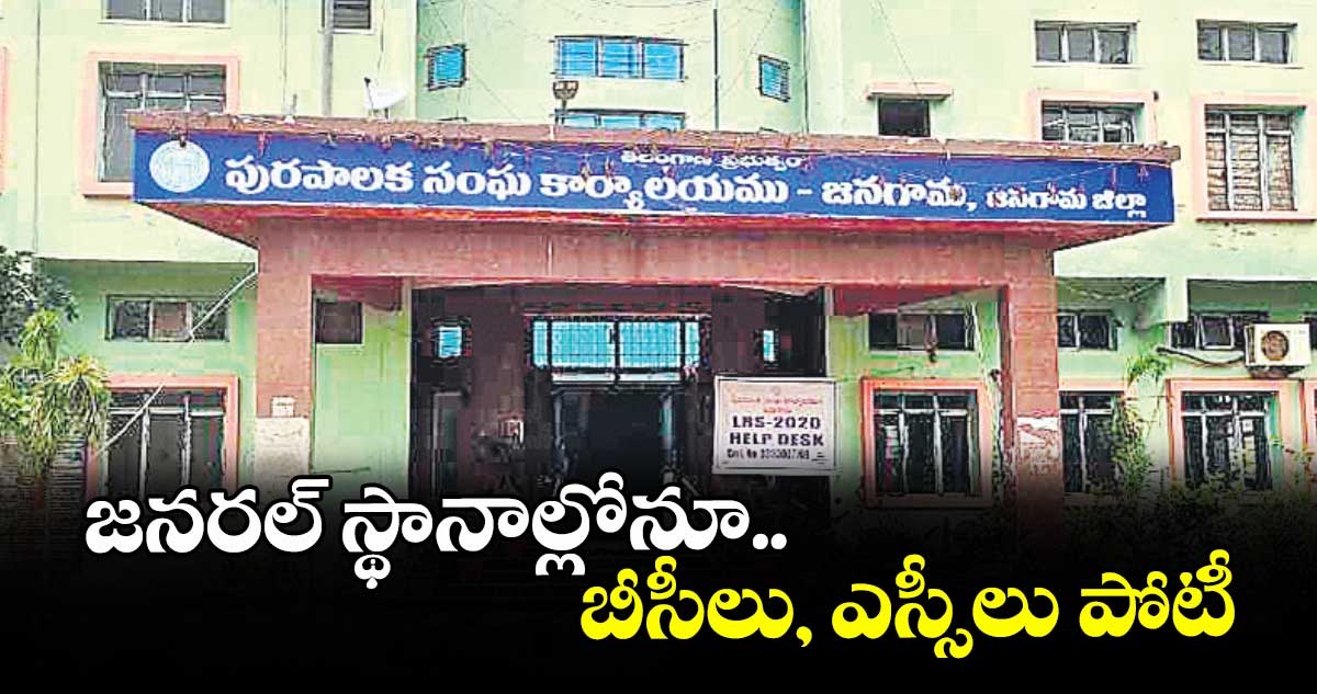 జనగామ మున్సిపల్ చైర్పర్సన్ పదవి బీసీ జనరల్కు రిజర్వ్కాగా.. ఈ మున్సిపాలిటీలో మొత్తం 30 వార్డులు ఉన్నాయి. వీటిలో ఎస్టీకి 1, ఎస్సీలకు 6, బీసీలకు 9, జనరల్కు 14 రిజర్వ్అయ్యాయి. దీంతో ప్రధాన పార్టీలు చైర్పర్సన్ పీఠం దక్కించుకోవాలన్న వ్యూహంతో జనరల్వార్డుల్లో బీసీలను రంగంలోకి దించాయి. 9వ వార్డులో బీజేపీ, బీఆర్ఎస్,11వ వార్డులో బీఆర్ఎస్, బీజేపీ, సీపీఐ,12వ వార్డులో కాంగ్రెస్, బీజేపీ, బీఆర్ఎస్ బీసీలకు టికెట్ ఇచ్చాయి. 14వ వార్డులో కాంగ్రెస్, బీజేపీ, 15వ వార్డులో కాంగ్రెస్, బీఆర్ఎస్, 16వ వార్డులో బీజేపీ, బీఆర్ఎస్,19వ వార్డులో కాంగ్రెస్, 21వ వార్డులో కాంగ్రెస్, బీజేపీ, బీఆర్ఎస్, 22వ వార్డులో కాంగ్రెస్, 23వ వార్డులో కాంగ్రెస్, బీఆర్ఎస్, 24వ వార్డులో బీఆర్ఎస్, బీజేపీ, 28వ వార్డులో కాంగ్రెస్, బీజేపీ, బీఆర్ఎస్, 30వ వార్డులో బీజేపీ బీసీ అభ్యర్థులను పోటీ చేయిస్తున్నాయి.