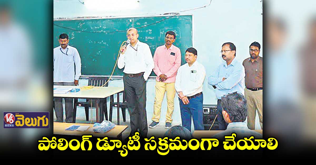 నల్గొండ అర్బన్ : మునుగోడు ఉప ఎన్నికలో పాల్గొనే పోలింగ్ సిబ్బంది డ్యూటీ సక్రమంగా చేయాలని ఎలక్షన్ అబ్జర్వర్ పంకజ్కుమార్, నల్గొండ కలెక్టర్ టి.వినయ్ కృష్ణారెడ్డి ఆదేశించారు. ప్రిసైడింగ్, అసిస్టెంట్ ప్రిసైడింగ్ ఆఫీసర్లకు గురువారం పట్టణంలోని ఎన్జీ కాలేజీలో నిర్వహించిన ట్రైనింగ్ క్లాస్లను వారు పరిశీలించారు. ఈ సందర్భంగా వారు మాట్లాడుతూ ఈవీఎం, వీవీ ప్యాట్ పనితీరుపై అవగాహన కలిగి ఉండాలన్నారు. ఎలక్షన్ సిబ్బంది నవంబర్ 2వ తేదీ ఉదయం 8 గంటల వరకు చండూరులోని డాన్ బాస్కో జూనియర్ కాలేజీలోని డిస్ట్రిబ్యూషన్ సెంటర్లో రిపోర్టు చేయాలని ఆదేశించారు. ఎలక్షన్ కమిషన్ గుర్తించిన 12 కార్డుల్లో ఏదో ఒకటి తీసుకొచ్చిన వారిని మాత్రమే ఓటు వేసేందుకు అనుమతించాలని సూచించారు. కార్యక్రమంలో అడిషనల్ కలెక్టర్ భాస్కర్రావు, నల్గొండ ఆర్డీవో జయచంద్రారెడ్డి, జడ్పీ సీఈవో ప్రేమ్కరణ్రెడ్డి, డీఈవో భిక్షపతి, మాస్టర్ ట్రైనర్లు తరాల పరమేశ్, బాలు ఉన్నారు.