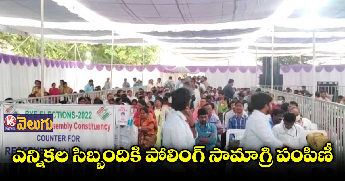 నల్గొండ : మునుగోడు ఉప ఎన్నికకు సంబంధించి ఏర్పాట్లు శరవేగంగా సాగుతున్నాయి. అధికారులు చండూర్లోని డాన్ బాస్కో జూనియర్ కాలేజీలో డిస్ట్రిబ్యూషన్ సెంటర్ ఏర్పాటు చేశారు. ఎన్నికల సిబ్బంది అక్కడకు వచ్చి పోలింగ్ సామాగ్రిని తీసుకుంటున్నారు. మెటీరియల్ తీసుకున్న అనంతరం కేటాయించిన పోలింగ్ స్టేషన్లకు వారిని పంపనున్నారు.