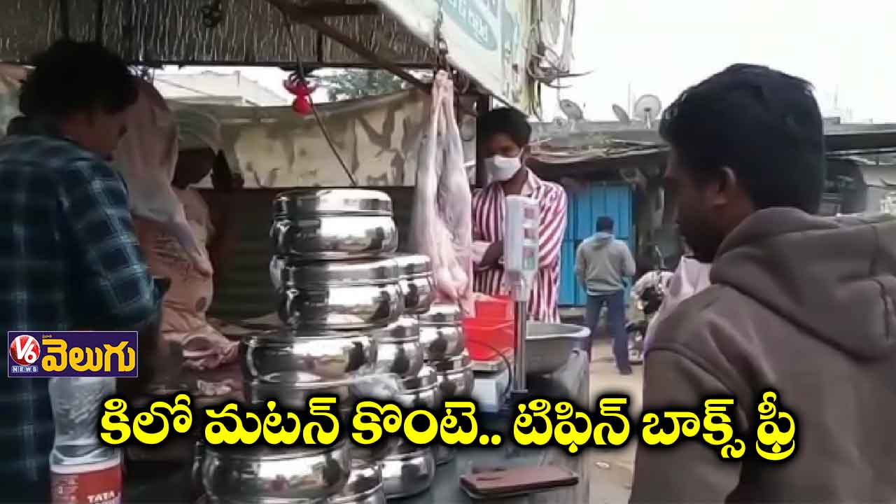 న్యూ ఇయర్ వేడుకల సందర్భంగా నల్లగొండ జిల్లా చండూరులో మటన్ షాపు యజమాని కస్టమర్లకు బంఫరాఫర్ ప్రకటించాడు. కిలో మటన్ కొంటె ఓ టిఫిన్ బాక్స్ ఉచితంగా అందించాడు. ఒక్కరోజే ఆఫర్ ఉండడంతో మటన్ కోసం షాపు ముందు జనాలు క్యూలు కట్టారు. గంట ఆలస్యమైనా కూడా మటన్, టిఫిన్ బాక్సు తీసుకునే వెళ్లారు. పర్యావరణం కోసం ప్లాస్టిక్ కవర్లను నిషేధించేందుకే నిర్ణయం తీసుకున్నామని తెలిపారు షాపు నిర్వాహకుడు.
