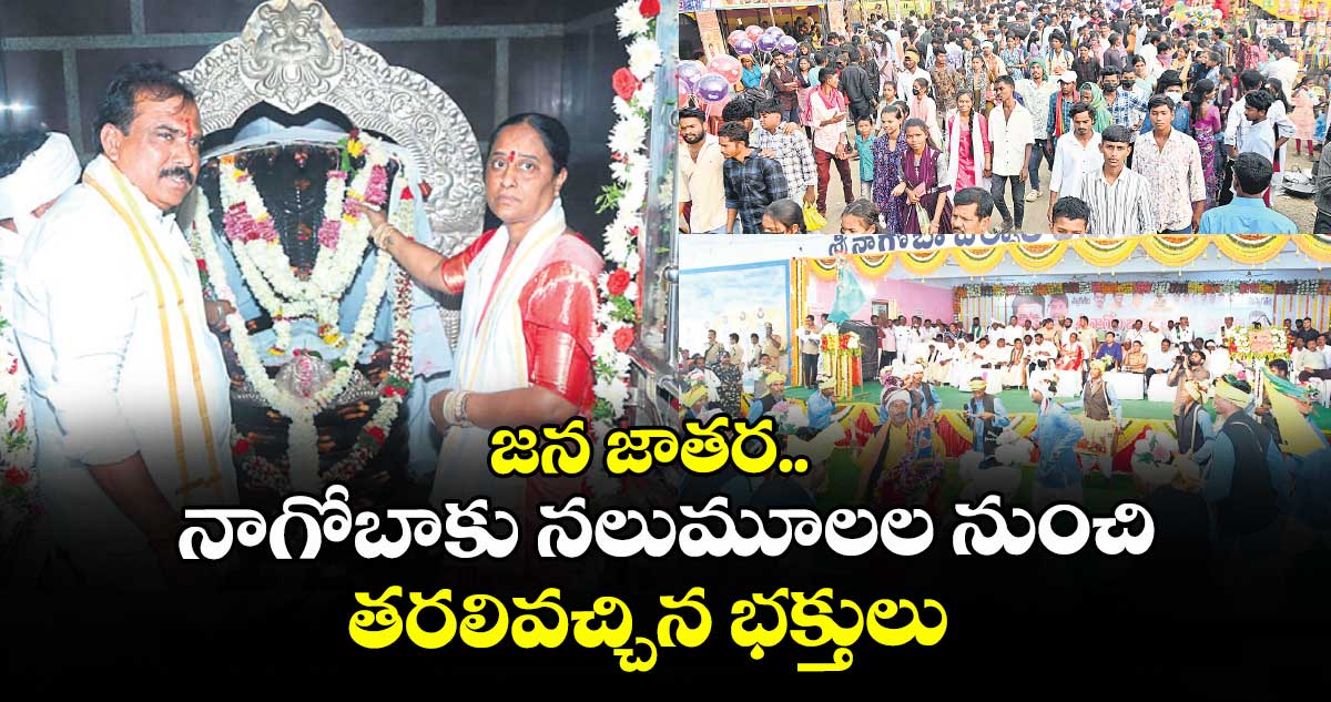 ఇంద్రవెల్లి, వెలుగు: నాగోబా జనసంద్రమైంది. ఆదిలాబాద్ జిల్లా ఇంద్రవెల్లి మండలం కేస్లాపూర్లో నాగోబా జాతర వైభవంగా కొనసాగుతోంది. గురువారం దర్బార్ జరగ్గా ఉమ్మడి జిల్లా నుండే కాకుండా తెలంగాణ, మహారాష్ట్ర నుంచి భక్తులు భారీ సంఖ్యలో తరలివచ్చారు. గంటల తరబడి క్యూలైన్లో ఉండి నాగోబా దర్శనం చేసుకొని మొక్కులు చెల్లించుకున్నారు. ఆలయంలో మంత్రి కొండా సురేఖ, ఎమ్మెల్యేలు వెడ్మ బొజ్జు పటేల్, పాయల్ శంకర్, కలెక్టర్ రాజర్షి షా, ఐటీడీఏ పీవో యువరాజ్ మర్మాట్, ఎస్పీ అఖిల్ మహాజన్, డీఎఫ్వో ప్రశాంత్ బాజీరావ్ పటేల్ పూజలు చేశారు. ఈ సందర్బంగా మెస్రం వంశీయులు మంత్రి కొండా సురేఖ, నేతలు, అధికారులను సన్మానించి నాగోబా ప్రతిమలు అందించారు.