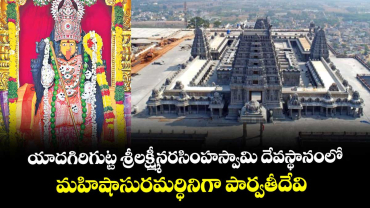 ప్రసిద్ధ పుణ్యక్షేత్రం యాదగిరిగుట్ట శ్రీలక్ష్మీనరసింహస్వామి దేవస్థానంలో మహిషాసురమర్ధినిగా పార్వతీదేవి