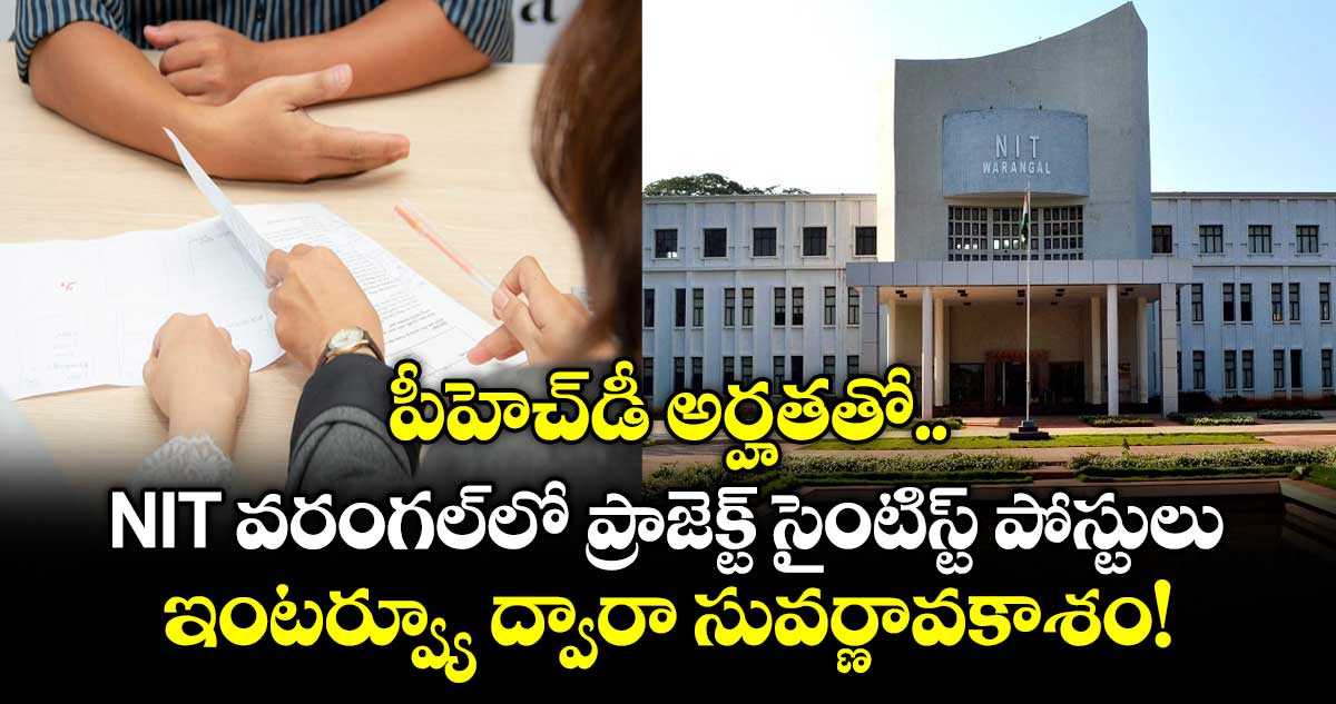 నేషనల్ ఇన్స్టిట్యూట్ ఆఫ్ టెక్నాలజీ, వరంగల్ (ఎన్ఐటీ వరంగల్) సీనియర్ ప్రాజెక్ట్ సైంటిస్ట్ ఖాళీల భర్తీకి నోటిఫికేషన్ విడుదల చేసింది.