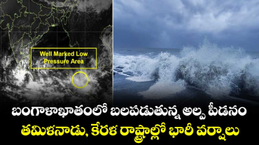 Read Moreబంగాళాఖాతంలో బలపడుతున్న అల్ప పీడనం : తమిళనాడు, కేరళ రాష్ట్రాల్లో భారీ వర్షాలు