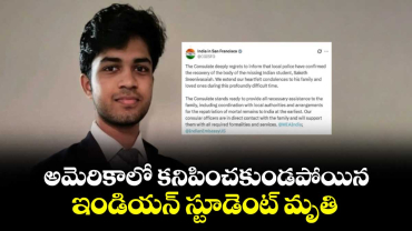 అమెరికాలో కనిపించకుండపోయిన ఇండియన్ స్టూడెంట్ మృతి