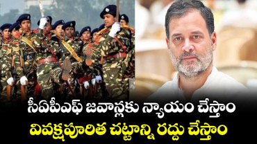 Read Moreసీఏపీఎఫ్ జవాన్లకు న్యాయం చేస్తాం..వివక్షపూరిత చట్టాన్ని రద్దు చేస్తాం: రాహుల్ గాంధీ