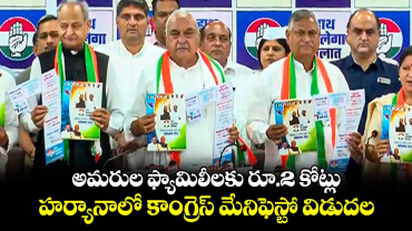 Read Moreఅమరుల ఫ్యామిలీలకు రూ.2 కోట్లు:హర్యానాలో కాంగ్రెస్ మేనిఫెస్టో విడుదల