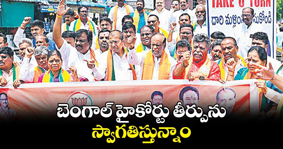 హైకోర్టు తీర్పుపై పశ్చిమబెంగాల్ సీఎం మమతా బెనర్జీ వైఖరిని నిరసిస్తున్నామని తెలిపారు. ఈ మేరకు గురువారం అంబర్పేటలోని జ్యోతిబాఫూలే విగ్రహం వద్ద బీజేపీ శ్రేణులతో కలిసి లక్ష్మణ్ నిరసన తెలిపారు. రిజర్వేషన్లను అడ్డం పెట్టుకుని కాంగ్రెస్ ఓటు బ్యాంకు రాజకీయాలు చేయడం మానుకోవాలన్నారు. మమత బెనర్జీ వైఖరికి ప్రజలు తగిన గుణపాఠం చెప్తారన్నారు. నిరసన కార్యక్రమంలో బీజేపీ నేతలు గౌతమ్ రావు, జమాల్పూర్ నందు, రమేశ్గౌడ్, ఉమేశ్, చారి, వాసు తదితరులు పాల్గొన్నారు.