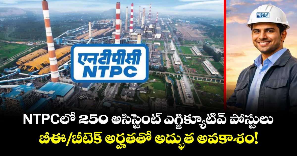 నేషనల్ థర్మల్ పవర్ కార్పొరేషన్ (NTPC) అసిస్టెంట్ ఎగ్జిక్యూటివ్ పోస్టుల భర్తీకి నోటిఫికేషన్ విడుదల చేసింది. ఆసక్తి, అర్హత ఉన్న అభ్యర్థులు ఆన్లైన్లో దరఖాస్తు చేసుకోవచ్చు. ఆన్లైన్ దరఖాస్తుల స్వీకరణ ఏప్రిల్ 23న ప్రారంభమై మే 7న ముగుస్తుంది.