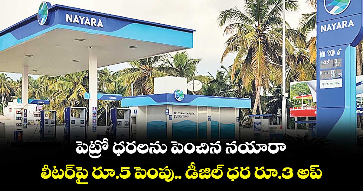 న్యూఢిల్లీ: క్రూడాయిల్ ధరలు 100 డాలర్లకు పైన కదులుతుండడంతో ప్రైవేట్ ఆయిల్ మార్కెటింగ్ కంపెనీ నయారా ఎనర్జీ గురువారం ధరలను పెంచింది. లీటర్ పెట్రోల్ ధరను రూ.ఐదు, డీజల్ ధరను రూ.మూడు పెంచుతున్నట్టు ప్రకటించింది. ప్రస్తుతం ఈ సంస్థ ఇండియాలో 6,967 పెట్రోల్ బంకులను నిర్వహిస్తోంది.