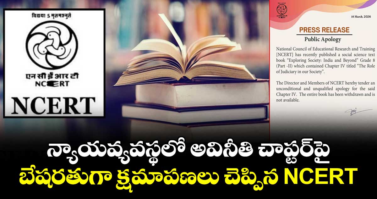 న్యూఢిల్లీ: సీబీఎస్ఈ ఎనిమిదో తరగతి సోషల్ బుక్లో ఎన్సీఈఆర్టీ ప్రచురించిన ‘న్యాయవ్యవస్థలో అవినీతి’ చాప్టర్ తీవ్ర దుమారం రేపిన విషయం తెలిసిందే. తాజాగా ఈ అంశంపై ఎన్సీఈఆర్టీ స్పందించింది. న్యాయవ్యవస్థలో అవినీతి అంటూ ప్రచురించిన అధ్యాయంపై సోషల్ మీడియా వేదికగా బేషరతుగా క్షమాపణలు చెప్పింది ఎన్సీఈఆర్టీ. ఈ పుస్తకాన్ని ఇప్పటికే ఉప సంహరించుకున్నామని.. మార్కెట్లో కూడా అందుబాటులో లేదని తెలిపింది. ఈ అసౌకర్యానికి చింతిస్తున్నామని పేర్కొంది. విద్య విషయంలో ఖచ్చితత్వం, సున్నితత్వం, బాధ్యతతో కూడిన అత్యున్నత ప్రమాణాలను నిర్వహించడానికి ఎన్సీఈఆర్టీ కట్టుబడి ఉందని తెలిపింది.